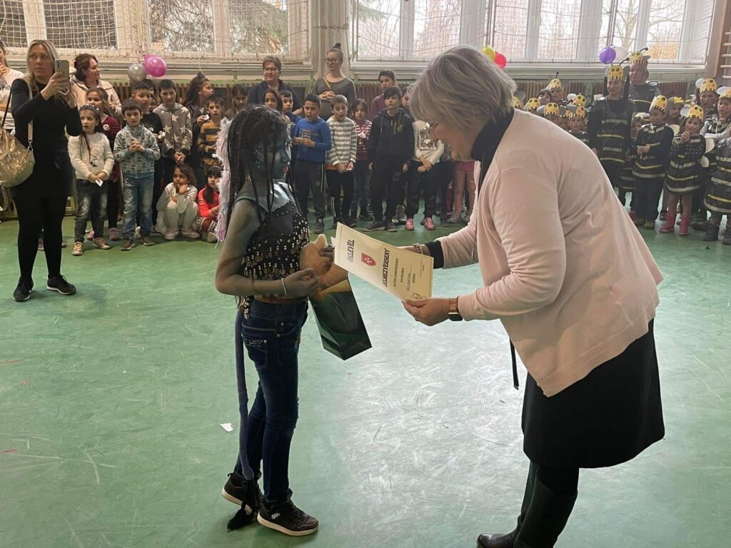 Ez a péntek délután az alsós tanulók farsangjáról szólt. Nagyon sok érdekes, kreatív jelmezt láthattunk. A zsűri több kategóriában díjazta tanulóinkat: egyénileg volt legmunkásabb, legszebb, legrémisztőbb, legötletesebb és legcsúnyább jelmez, illetve csoportos versenyben is részt vettek az osztályok. Néhány csoport még előadással, tánccal is szórakoztatta a közönséget. Nagyon ügyesek voltak, köszönjük szépen, hogy felkészültek erre az alkalomra.